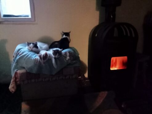 Iniţial, am vrut să-i oferim spre adopţie pe cei trei pisoi, Bondocel, Bretonel şi Purecel. I-am păstrat, însă, pe toţi, că prea-s frumuşei şi jucăuşi şi sperăm că vor avea o viaţă frumoasă la casa noastră de la ţară. În niciun caz nu vor ajunge să fie abandonaţi pe vreun tăpşan, ca mama lor.